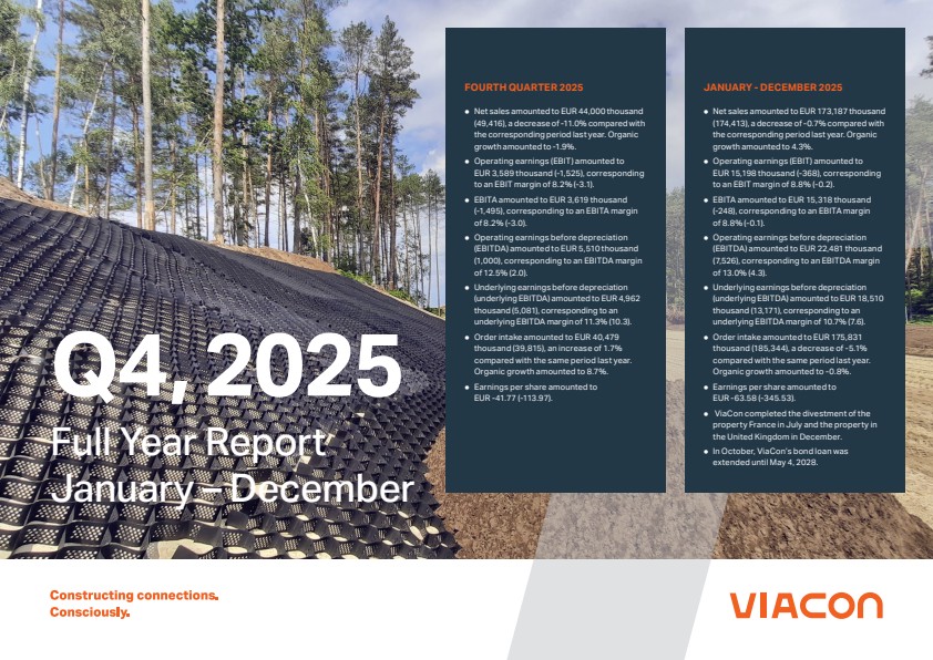 The consolidation aims to create clear commercial, operational, and administrative synergies. Under a unified management structure, Water & Ground Solutions will benefit from a stronger customer offering and an improved ability to leverage our combined expertise. The Bridges & Culverts Solutions business area will remain unchanged. The new organization will be presented in full in the report for the first quarter of 2026.